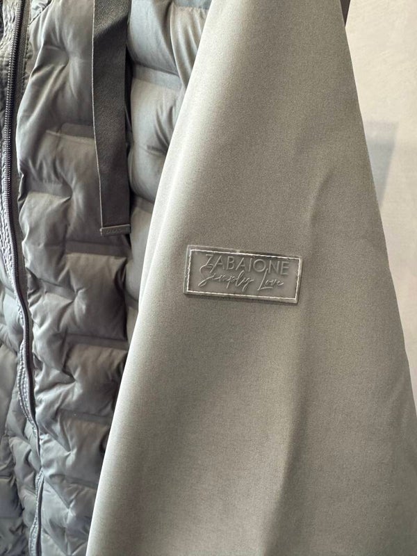 Halflang met ritssluiting vooraan. Zakken buitenzijde afsluitbaar met rits