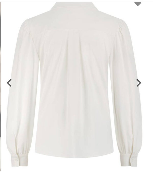 De blouse Philly is een doorknoopte blouse met lange mouwen met kleine pofdetail op de schouders en manchet. Het item heeft een normale kraag en is afgerond aan de voorkant.